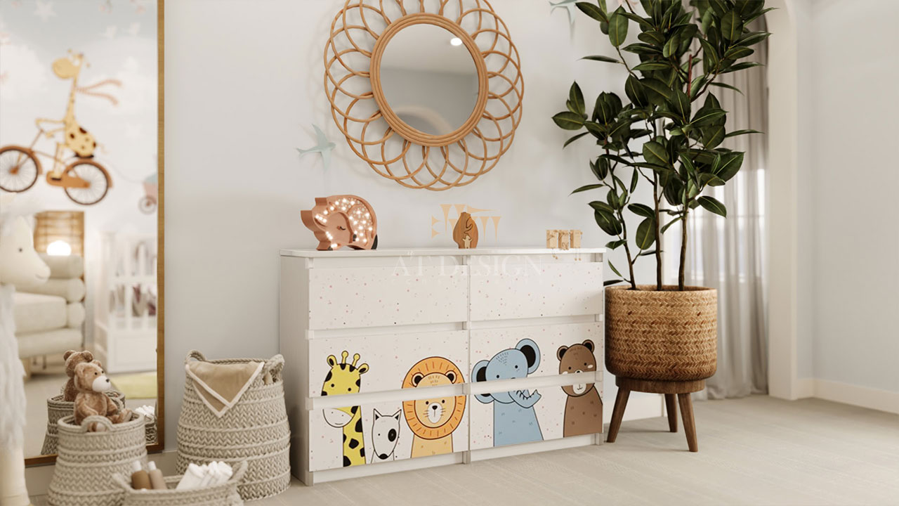 ما در At Design  با تجربه طراحی پروژه‌ های تخصصی کودک و پروژه‌ های بین‌المللی، فضاها یی خلق می‌کنیم که متناسب با روحیات کودک و نیازهای خانواده طراحی شده‌ اند. از انتخاب تم‌ های خاص مانند حیوانات، زرافه یا فضاهای فانتزی، تا نورپردازی، رنگ ‌بندی و طراحی عملکرد گرا، تمام جزئیات با دقت و تخصص بررسی می ‌شوند.