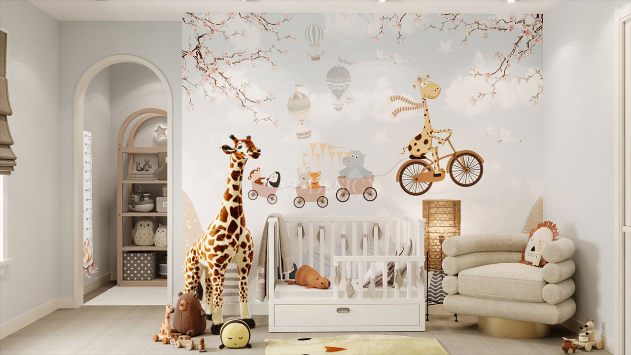 طراحی داخلی اتاق کودک با تم زرافه