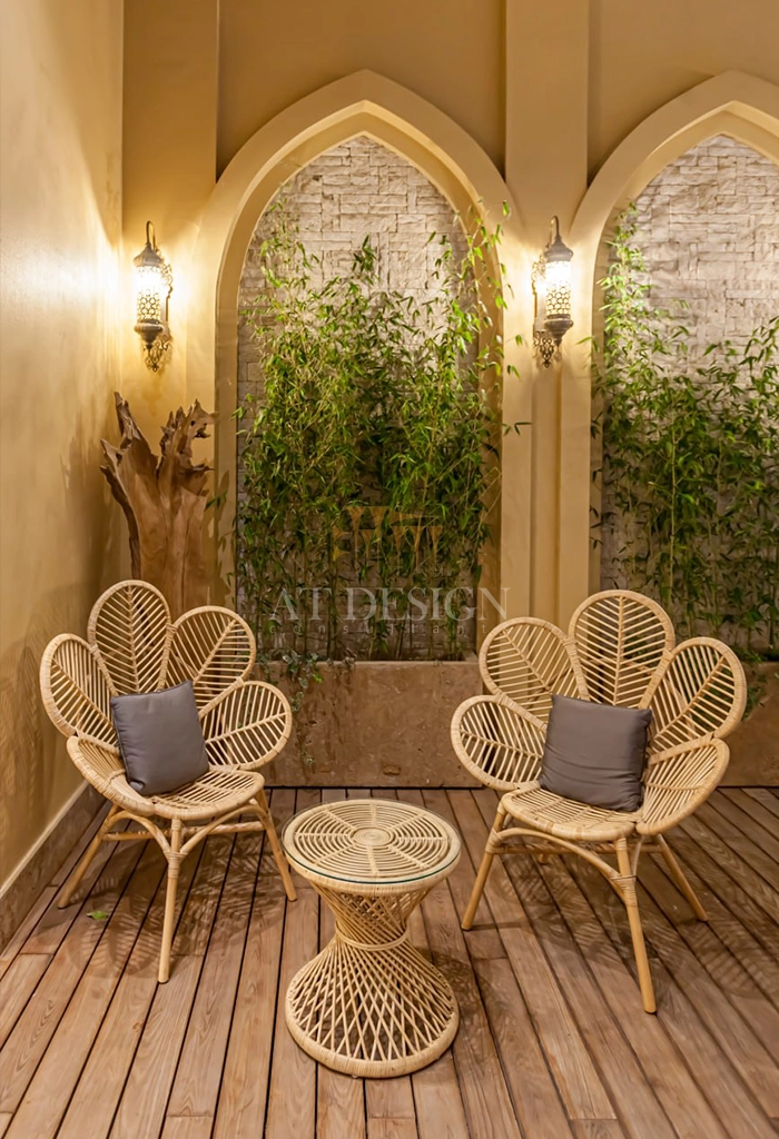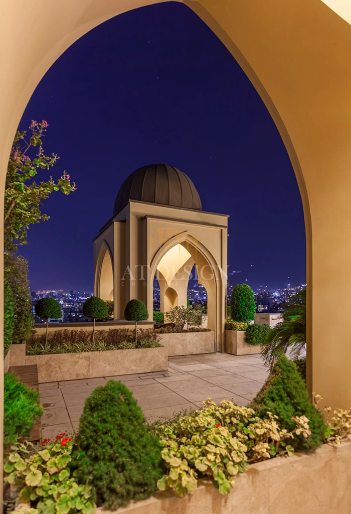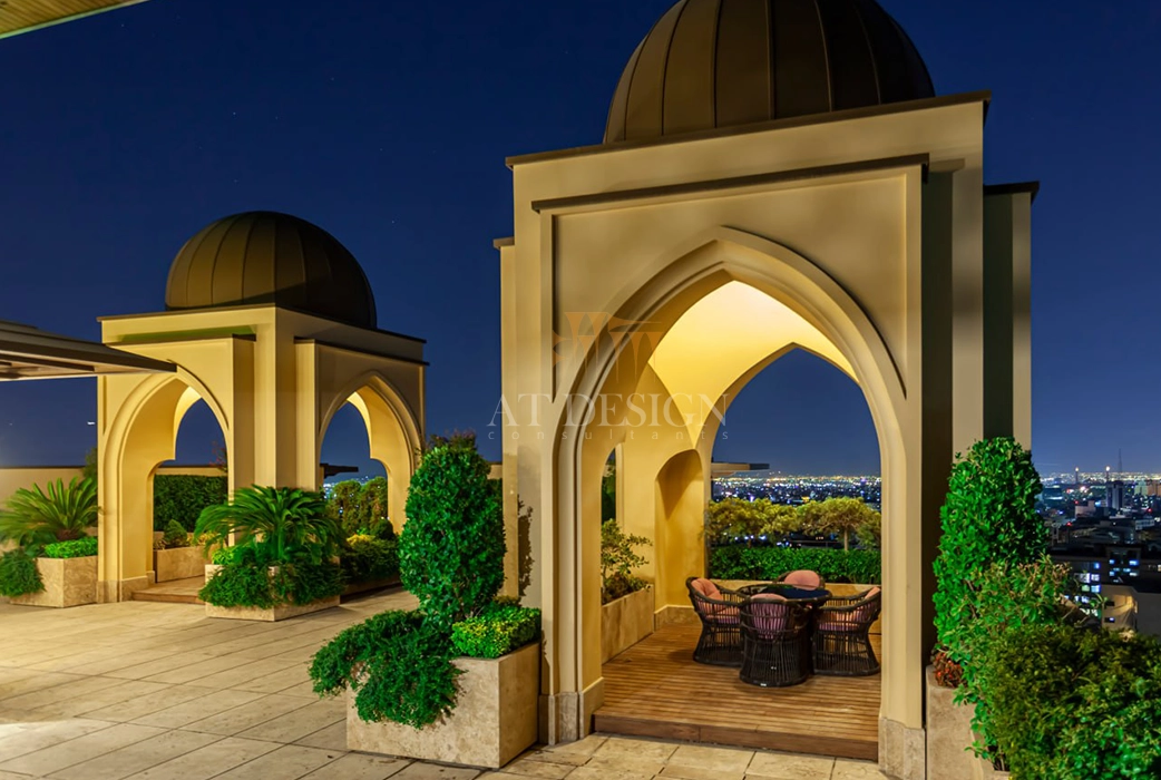 در این پروژه، معمار با بهرهگیری از عناصر فراموششده معماری ایرانی مانند فضای پیشورودی باشکوه، سرستونهای محرابی شکل، نجاریهای اصیل و نگارگریهای ظریف، اثری ماندگار خلق کردهاند. استفاده از روفگاردن الهامگرفته از باغهای ایرانی، علاوه بر ایجاد فضایی سبز و آرامشبخش برای ساکنان، پیوندی میان طبیعت و زندگی شهری برقرار کرده است.