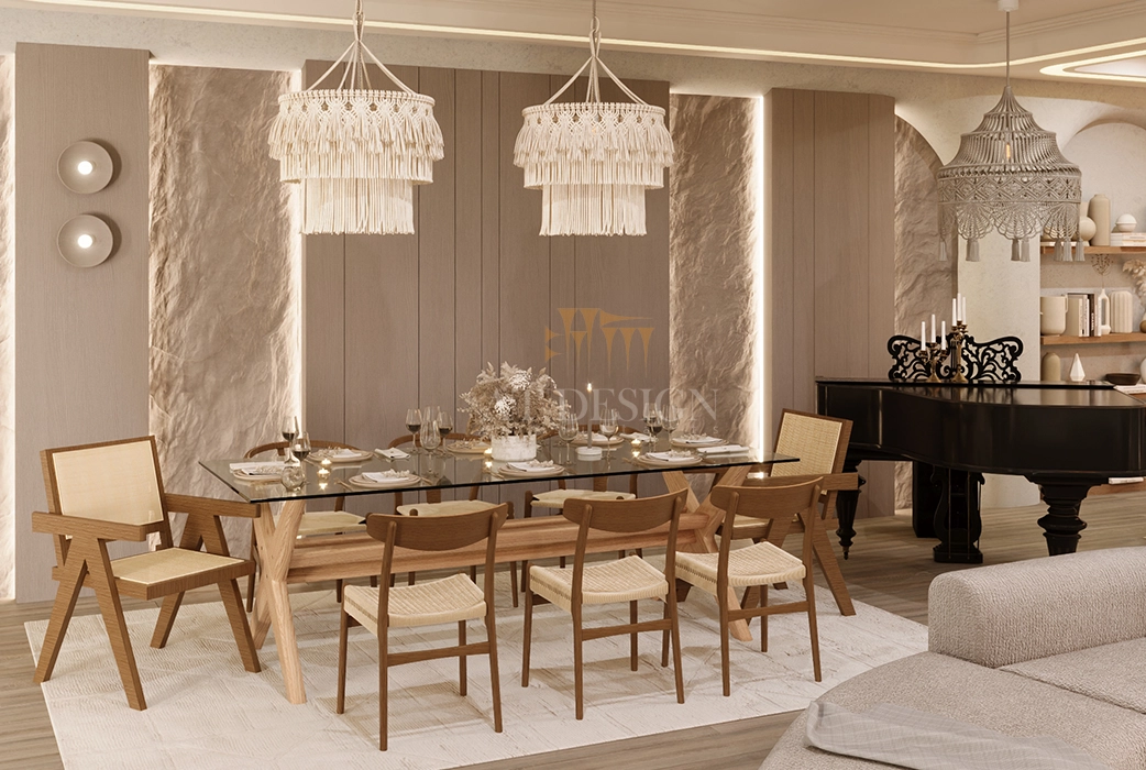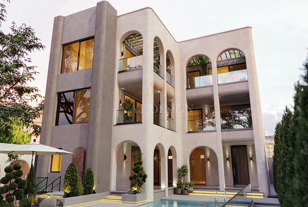 این پروژه نهتنها پاسخی معمارانه به نیازهای فضایی یک زندگی ویلایی مدرن است، بلکه از نظر زیباییشناسی، سعی در خلق اثری ماندگار و نمادین در منطقه دارد. ترکیب معماری معاصر با فرمهای کلاسیک قوسی، روایتی تازه از زندگی در طبیعت ارائه کرده که هم لوکس است، هم معناگرا و هم زنده.طراحی داخلی بنا بصورت یکپارچه در 3 طبقه در هماهنگی خاص با نمای ساختمان قرارگرفته